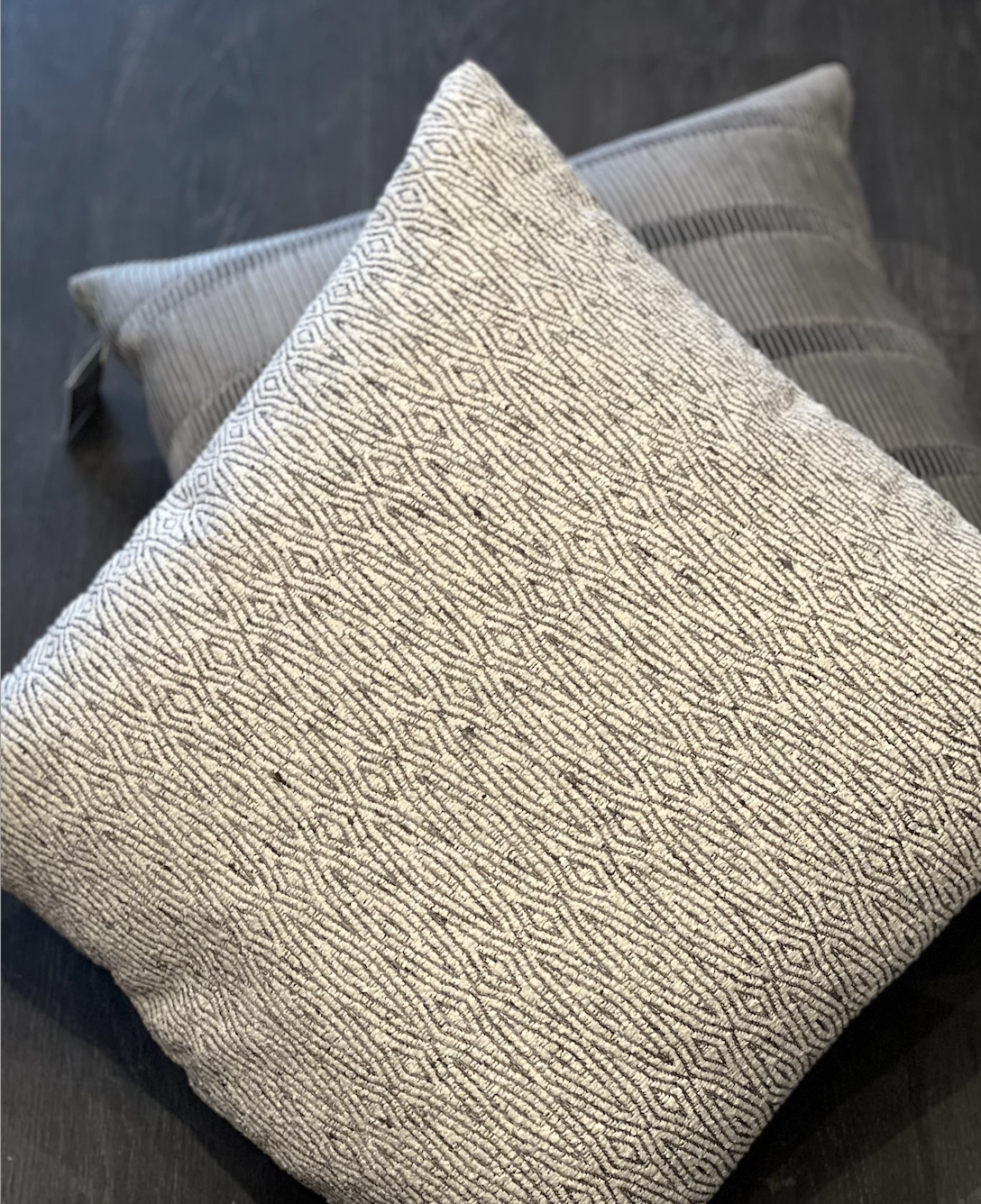 Handmade with high quality craftsmanship, it has beautiful woven texture with shades of ivory and grey metal tones.  Â
