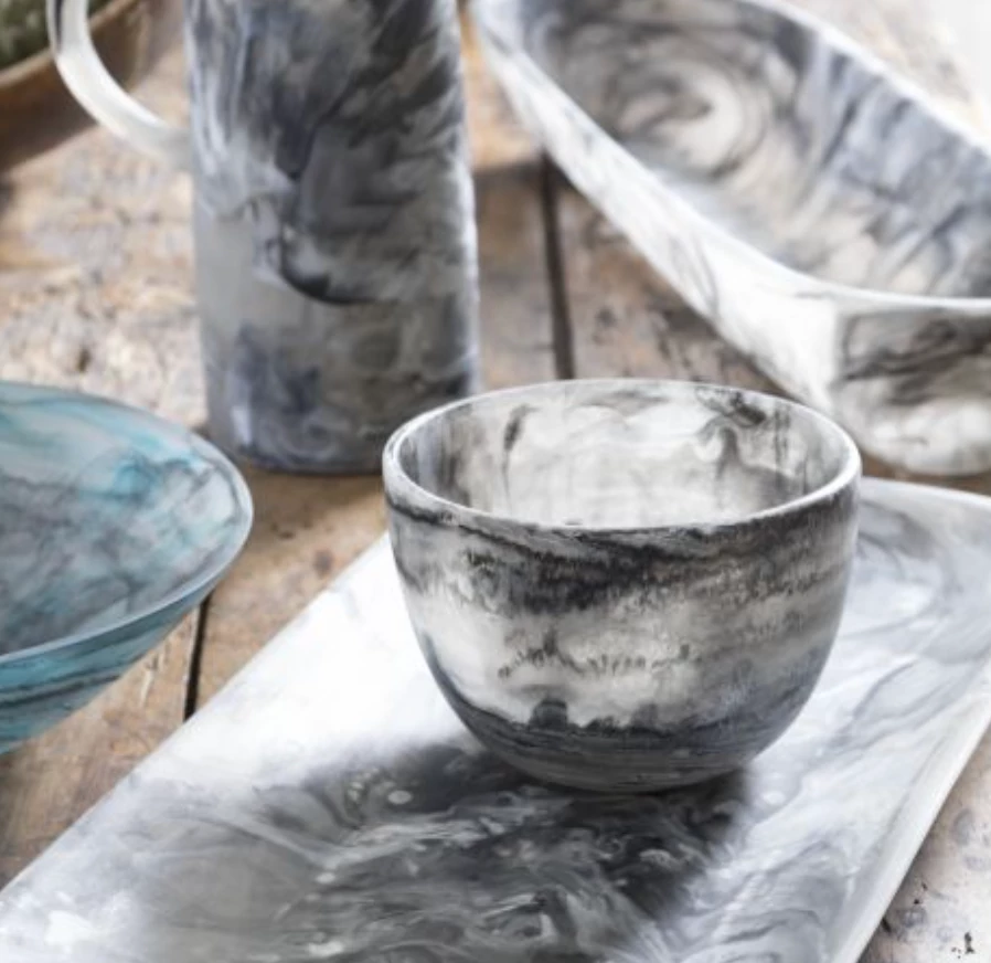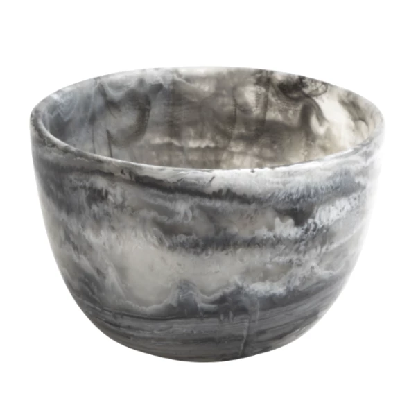 Dips, snacks and little side treats are perfect in these swirl resin deep bowls. Add it to a larger platter and it makes the ideal duo. All pieces are hand crafted in smooth resin with simple, clean lines to show off the mesmerizing marbled color. Durable enough for everyday entertaining indoors or outside.Â