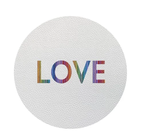 LOVE! LOVE! LOVE! LOVE! We can’t get enough of these endearing placemats that serve up what we all need more of.Â