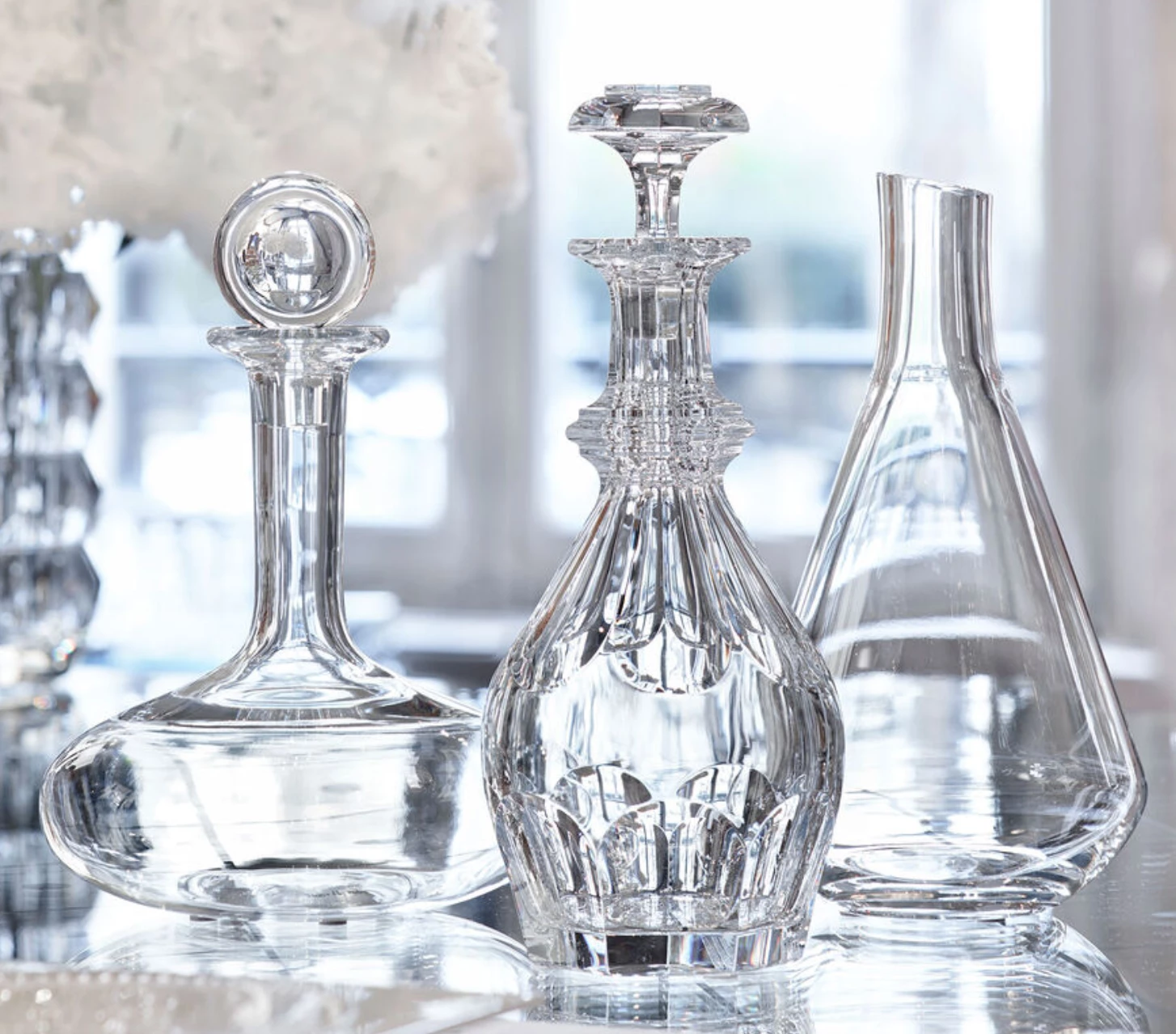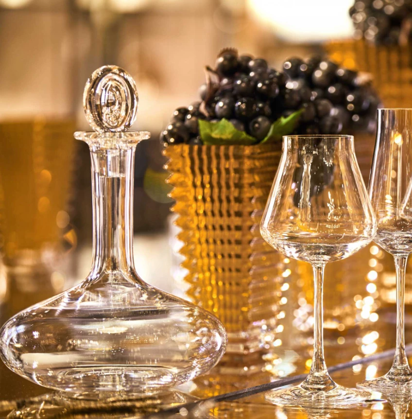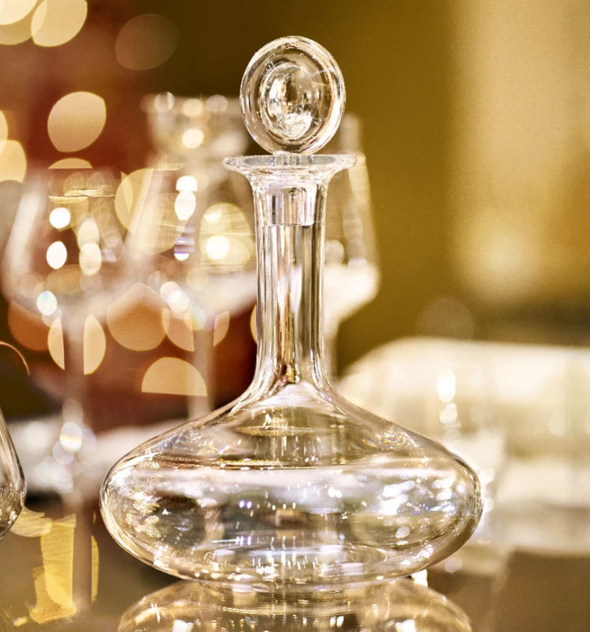 Decanting a young wine allows its aromas to develop and be savored later: airing it out releases its full flavor. Decanting may also be a fitting option for older wine that has yet to reach complete maturity. The Baccarat Clear crystal Oenologie Decanter is not only a vehicle that helps the wine achieve its full integrity; it is also a stunningly crafted piece. Its build echoes that of a laboratory volumetric flask, but its functional form is elevated thanks to the exquisite Baccarat Clear crystal and its exceptional design flourishes. The poise of the slender neck morphs gracefully into the elliptically-shaped base. The stopper crowns the silhouette with a perfectly rounded loop of Baccarat Clear crystal.