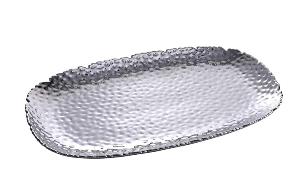 Our best selling platter is made of high fired porcelain and is tarnish free and stain resistant. Will not scratch or lose luster.