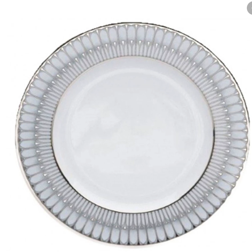 - Dessert/Salad Plate, 8.5″ | Dinner Plate, 10.5″ | Rim Soup Plate, 7.5″ | Bread & Butter Plate, 6.25″ | Oval Platter, 16″L x 11″W | Rectangular Cake Platter, 5.75″W x 16″L | Deep Round Platter, 11.5″D | Teapot, 25oz | Coffee Pot, 42oz | Tea Cup, 6.75oz | Tea Saucer, 6.25″ | Coffee Cup, 3oz | Coffee Saucers, 4.75″ | Sugar Bowl, 9oz