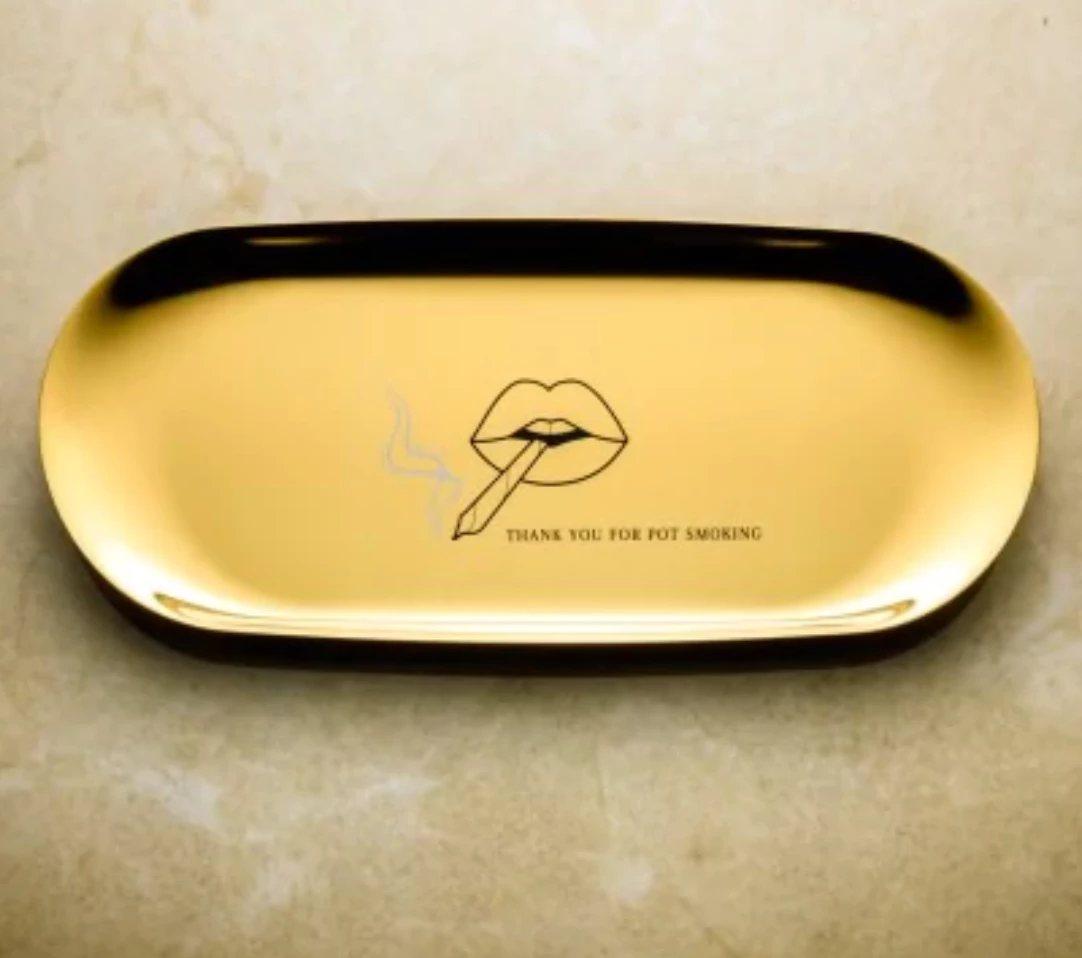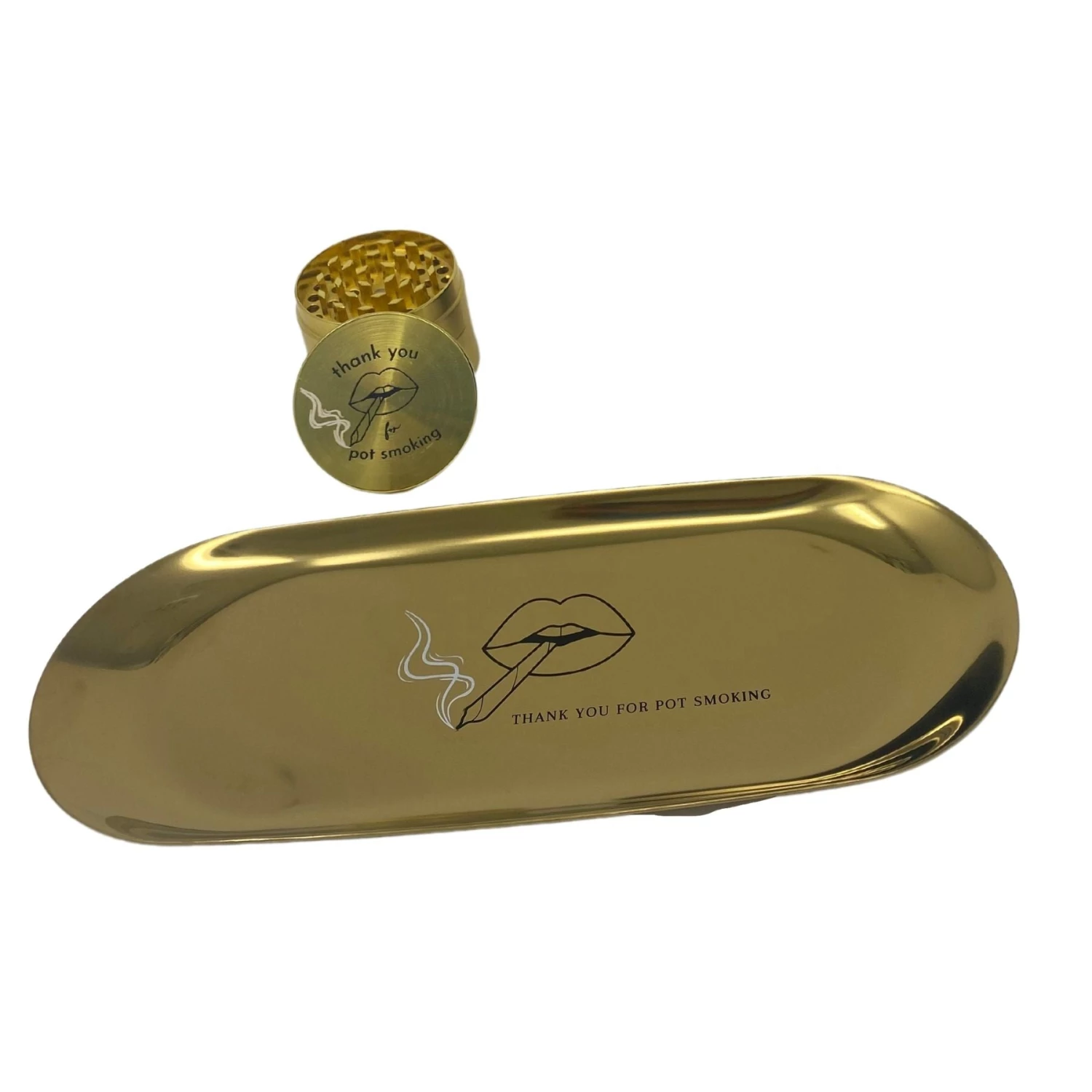 We love word play almost as much as we love cannabis. This sexy and functional rolling tray reads Thank You For Pot Smoking and features a super sexy lips and joint graphic. Pair it with the matching grinder for a great gift!