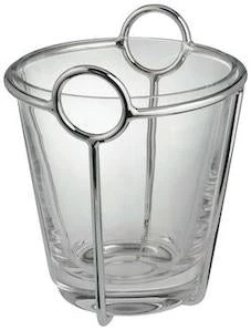 This two-piece champagne bucket is handcrafted out of heavy glass and features a silverplate rack. Handmade in France.