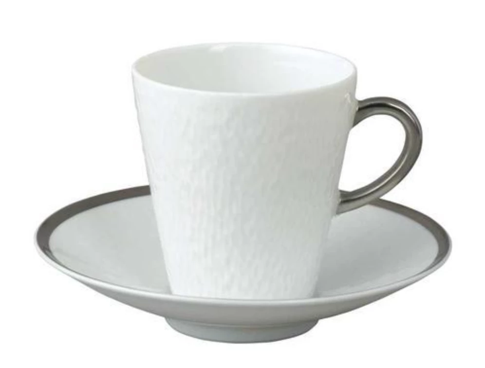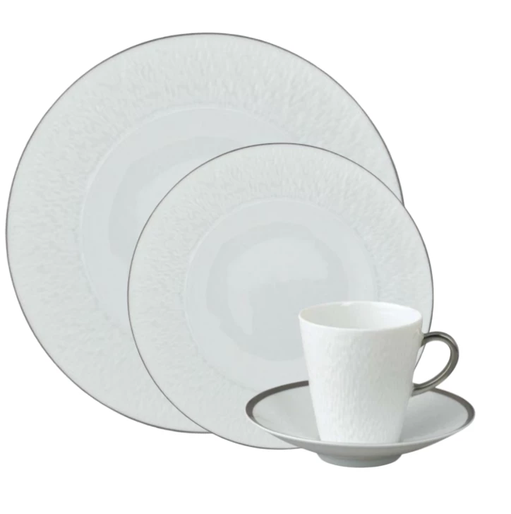 Unusual shapes combined with exquisite design make Raynaud’s Mineral Platinum an exciting pattern for the modern table. Each piece of Limoges Porcelain is textured by hand and decorated with a luxuriant band of platinum, making your table a precious place to entertain.