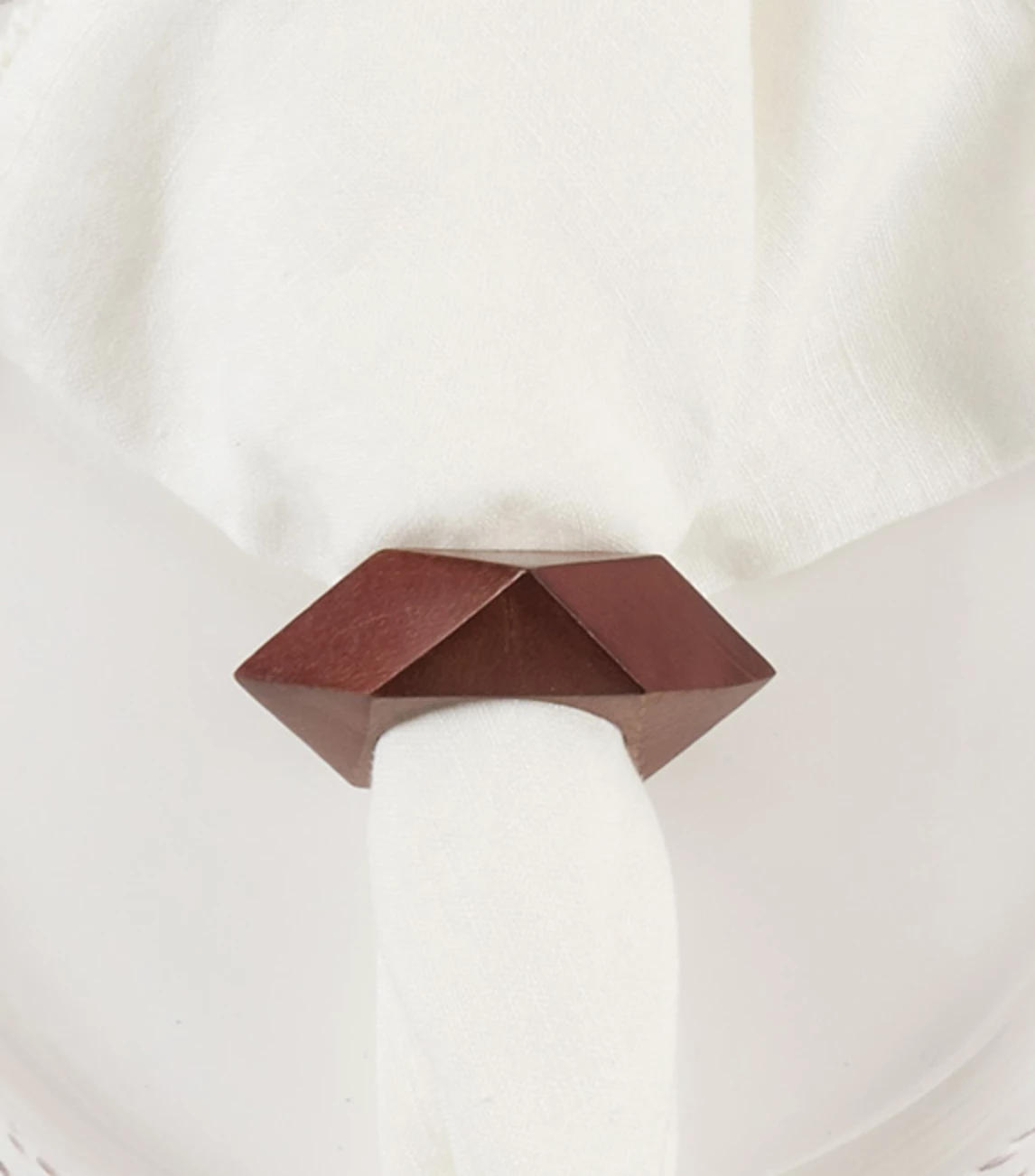 Warm wood tones in a geometric design create a modern yet natural feel for this napkin ring set. Mix it with one of our linen stone washed napkins and watch your table come to life