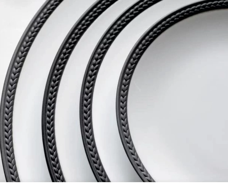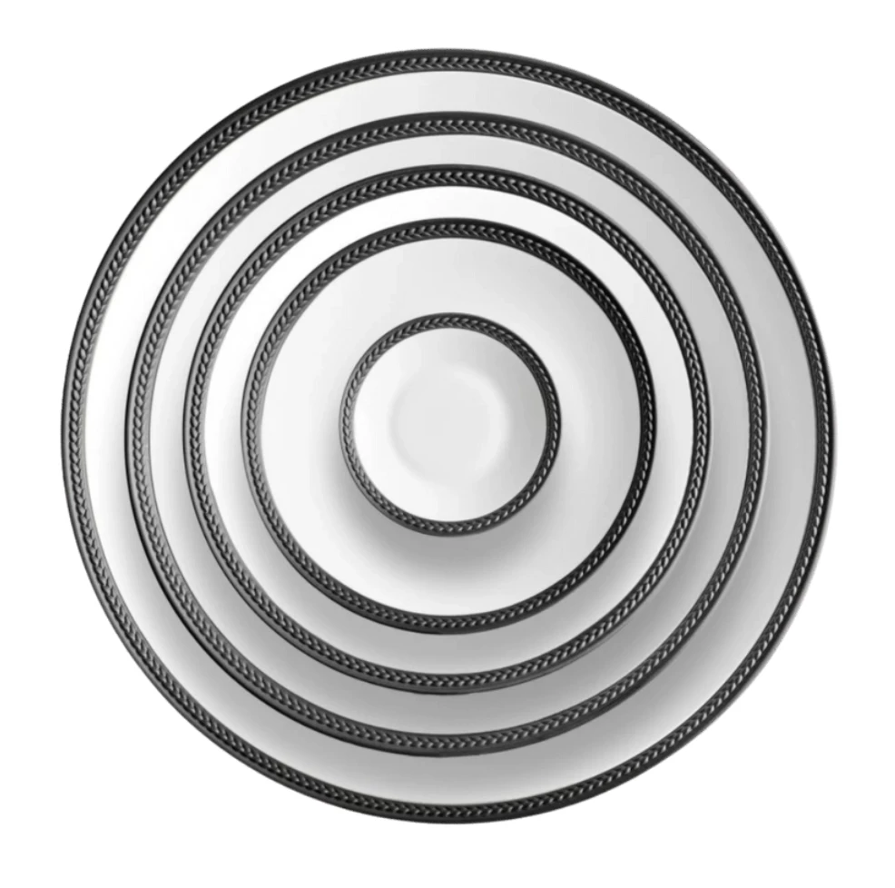 Soie TressĂ©e, French for “Silk Braid,” is a modern expression of a timeless classic and offers a contemporary look on an ancient shape. Made of porcelain, this dinnerware collection is available in white or with the braids beautifully accentuated in hand-gilded 24K gold, platinum, or black.