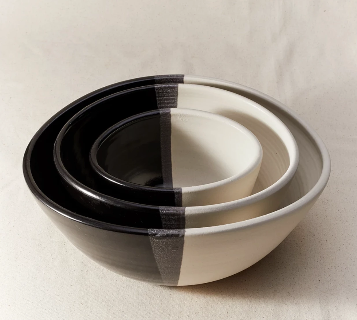 As a set of three, these handmade oval nesting bowls sit perfectly inside one another. Fill them with food for a party or leave them out as dΓ©cor.