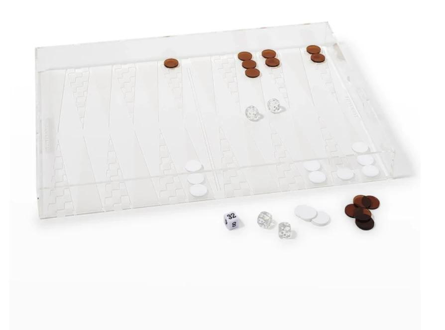 Designed with style in mind our acrylic backgammon tray is perfect for entertaining. Complete with acrylic playing pieces and dice this timeless set brings fun and function together for summer entertaining.
