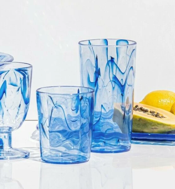 Bring the ocean indoors with these beautiful blue swirl acrylic drinkware. They are ideal for poolside and outdoor dining since they are shatterproof and dishwasher safe and they Stack too!