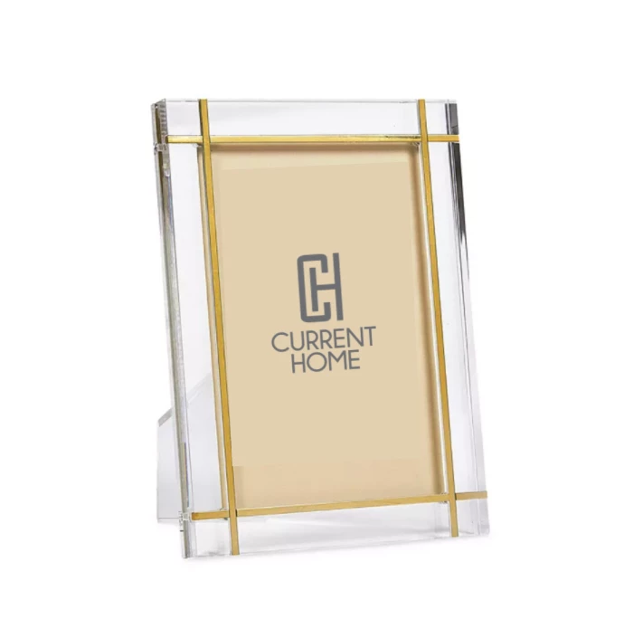 This new frame has a modern elegance, with a stunning lucite frame with gold inlay detailing.