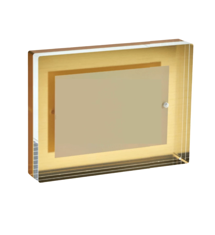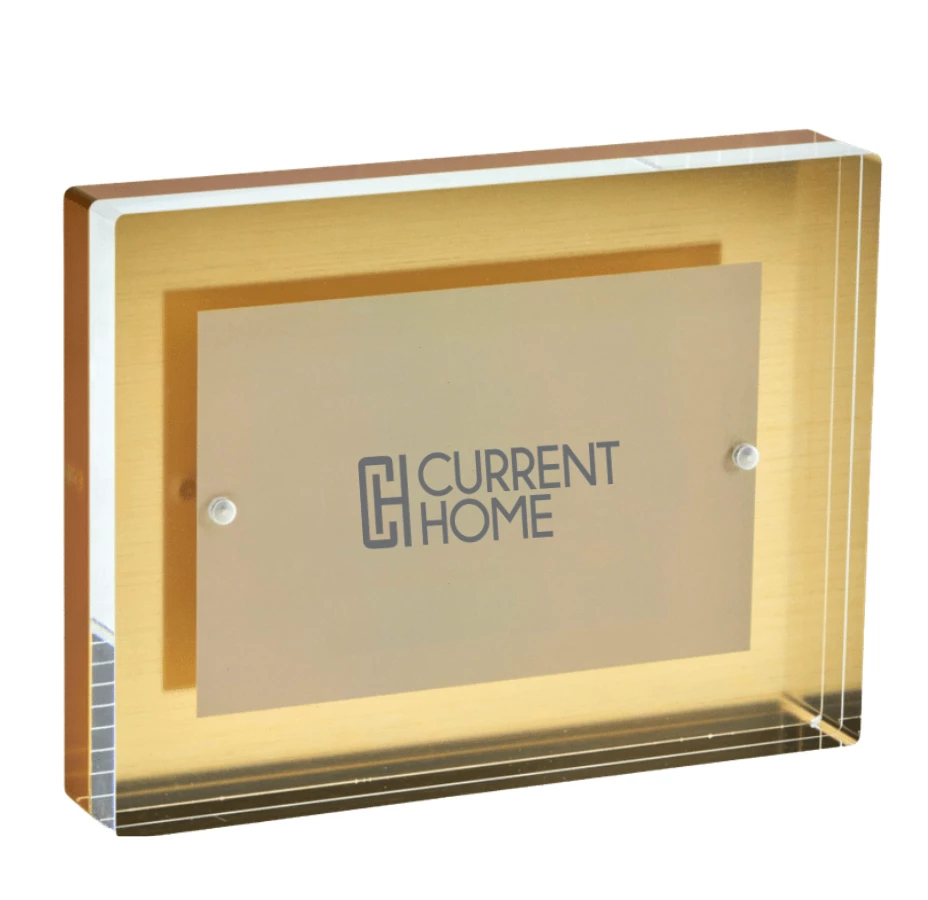 A sleek magnetic frame with an attractive brushed gold backing that is seen around the edge of the photograph. This frame can be used horizontally or vertically and looks great in many spaces.