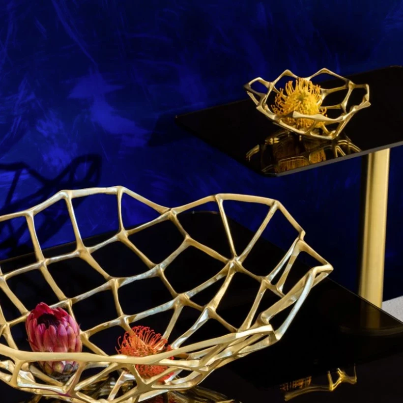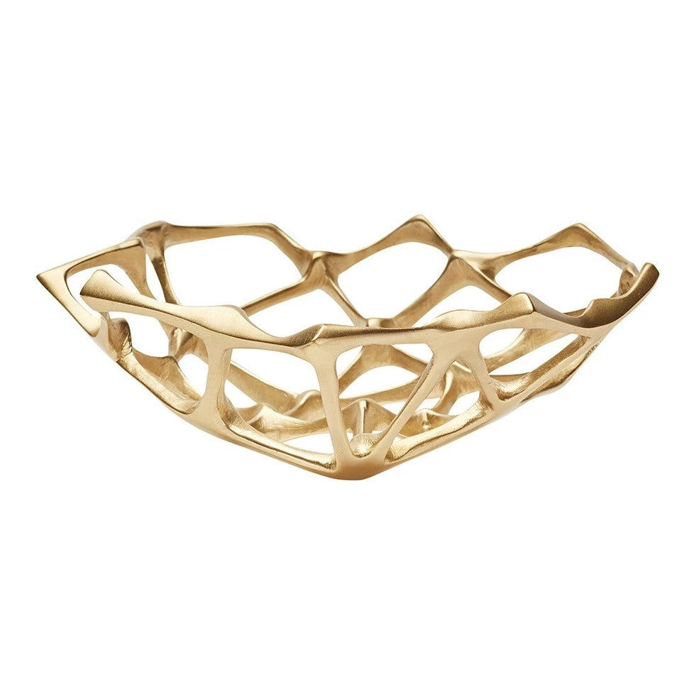 The Bone Bowl by Tom Dixon is part of a series of sculptural artifacts cast in solid brass with a matte finish bearing a bone-like quality. Simply Stunning on a table or console,  its open structure works as an ideal fruit bowl or unusual table top piece.