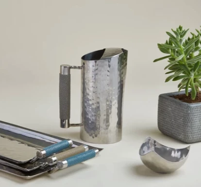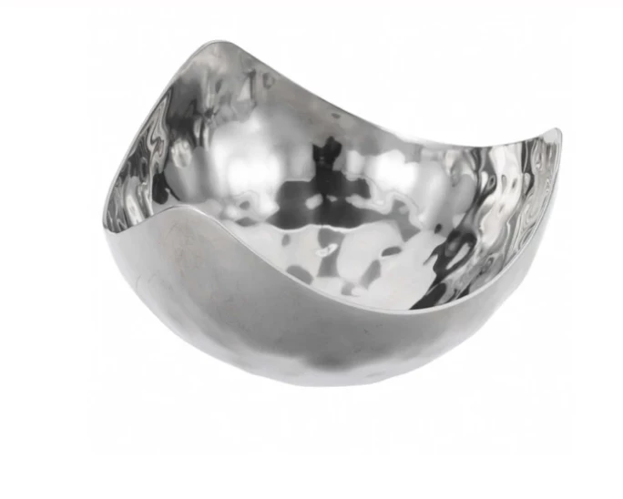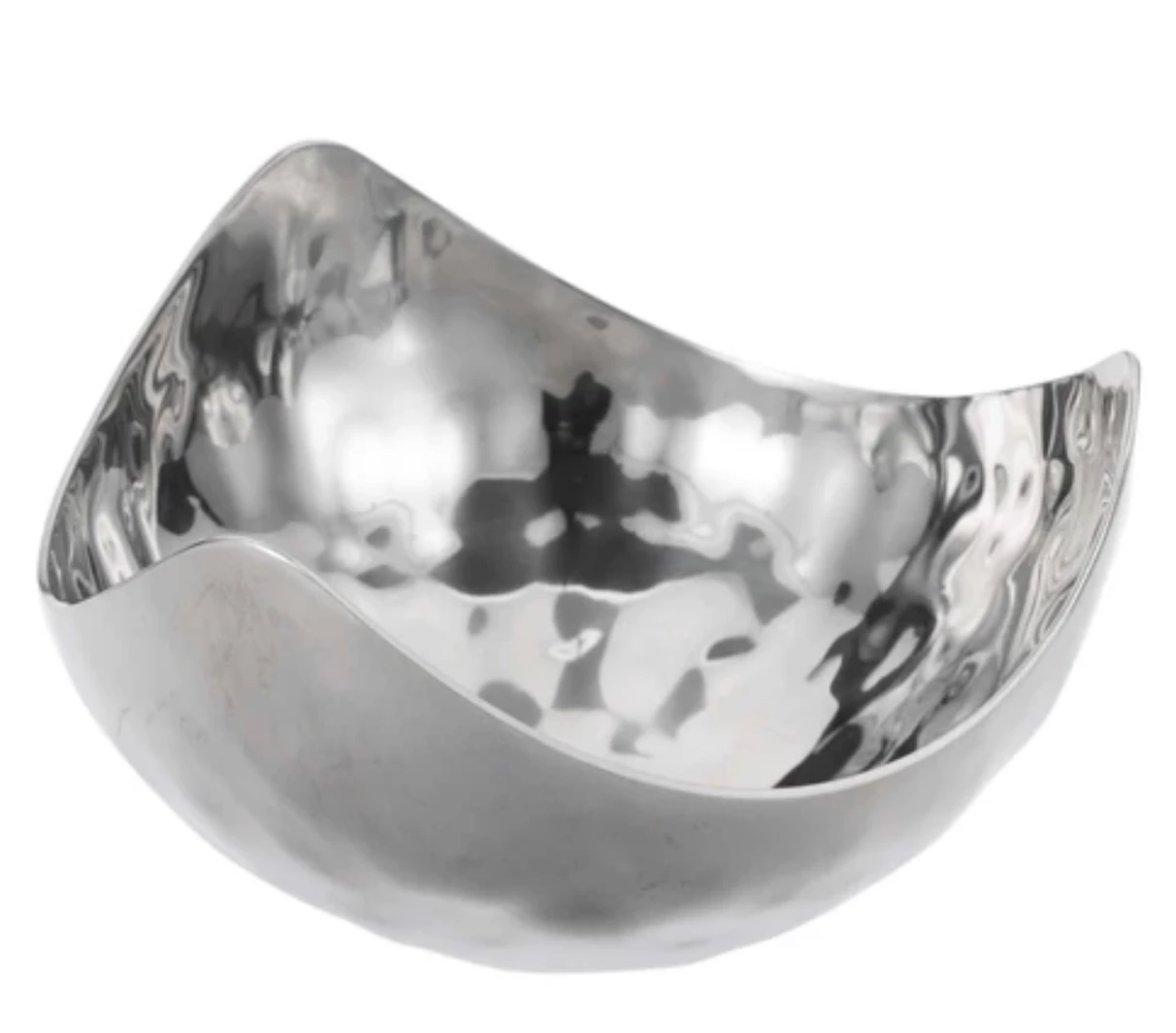 This hammered stainless steel small bowl is perfect for nuts, candy and dips. Pair it with our shagreen handles trays and add a spoon for chic entertaining.