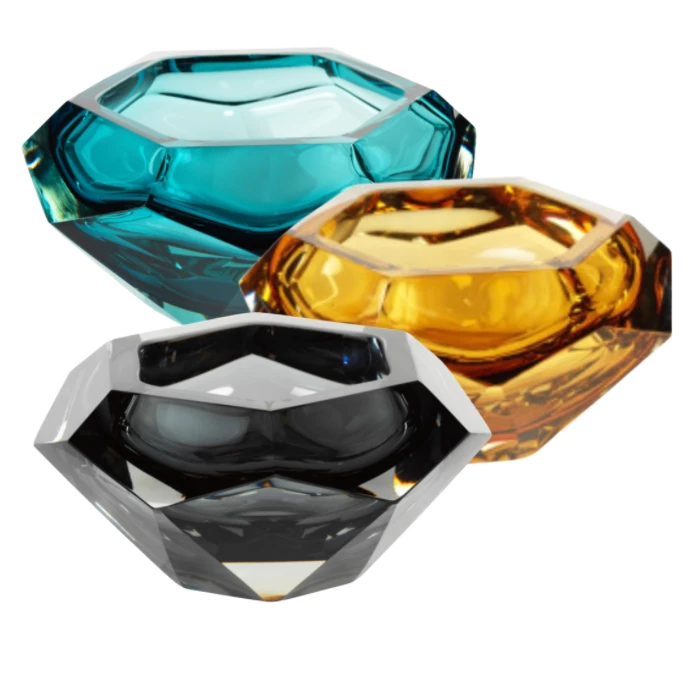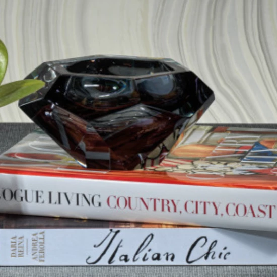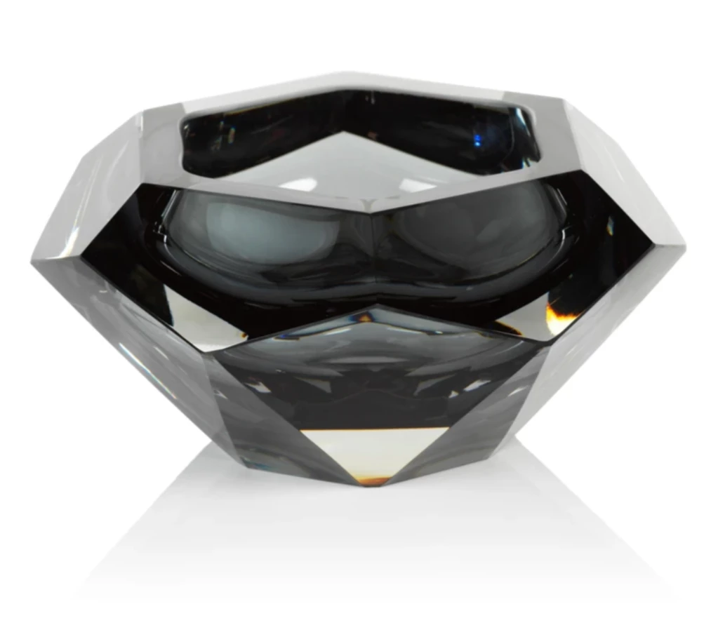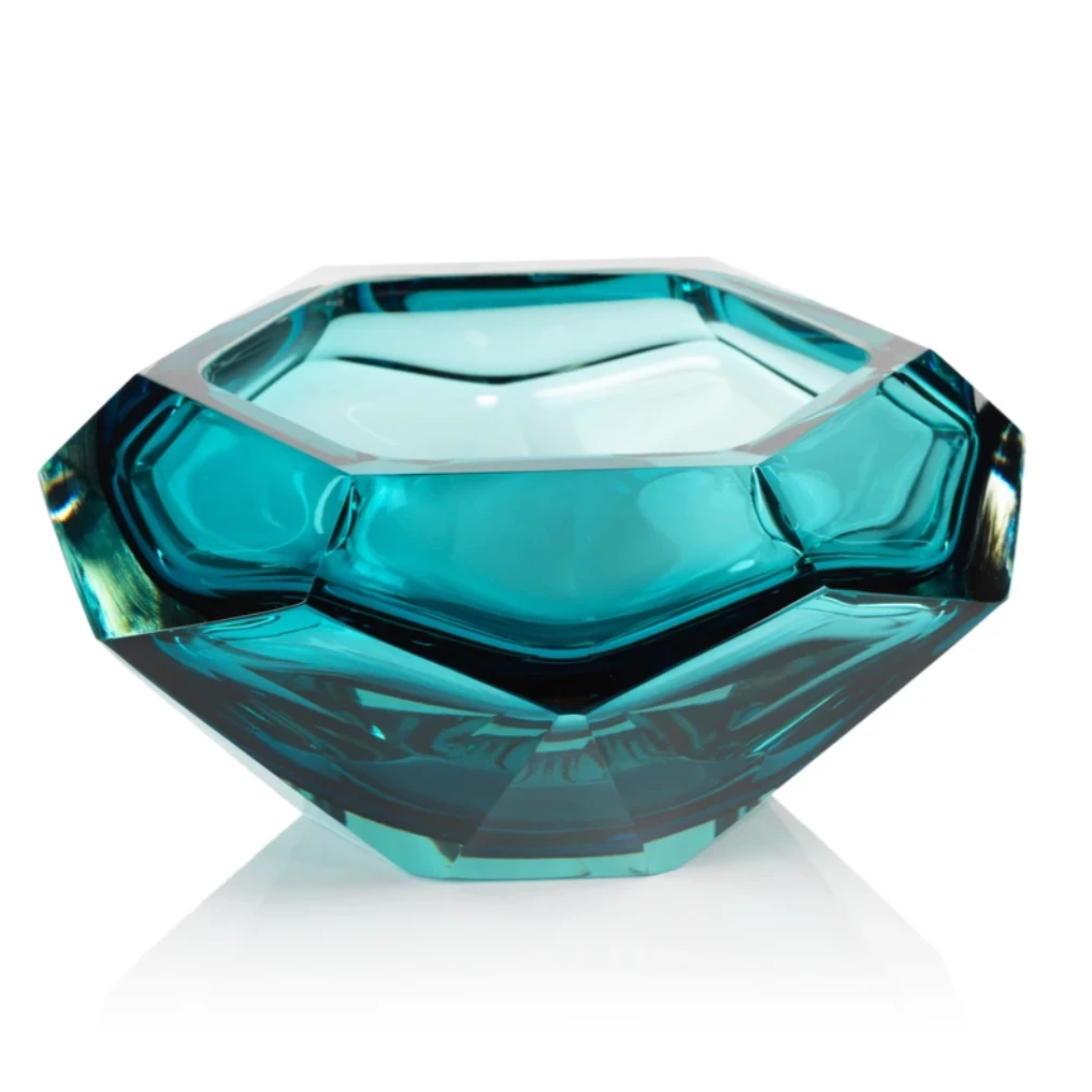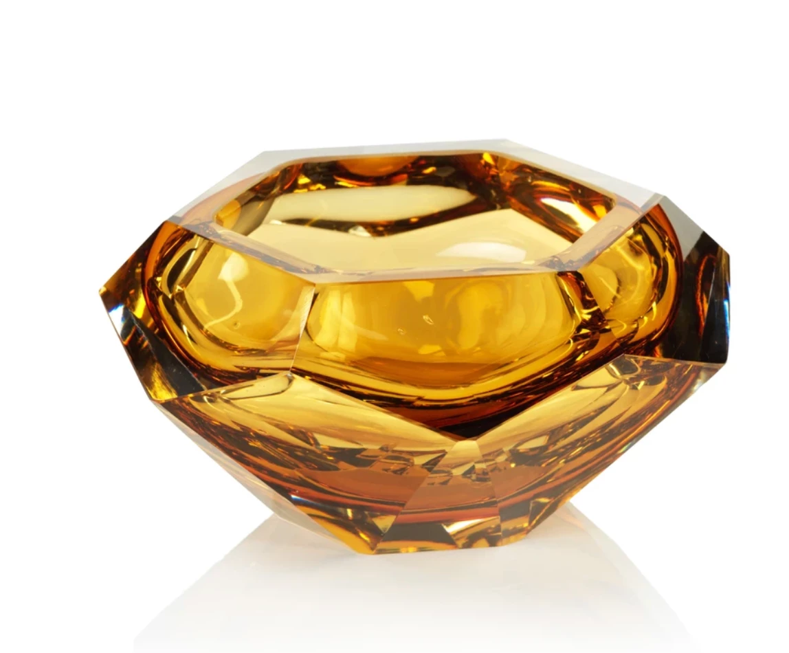 Handmade with impeccable quality, this glass bowl is a beautiful piece featuring a sleek, faceted design.