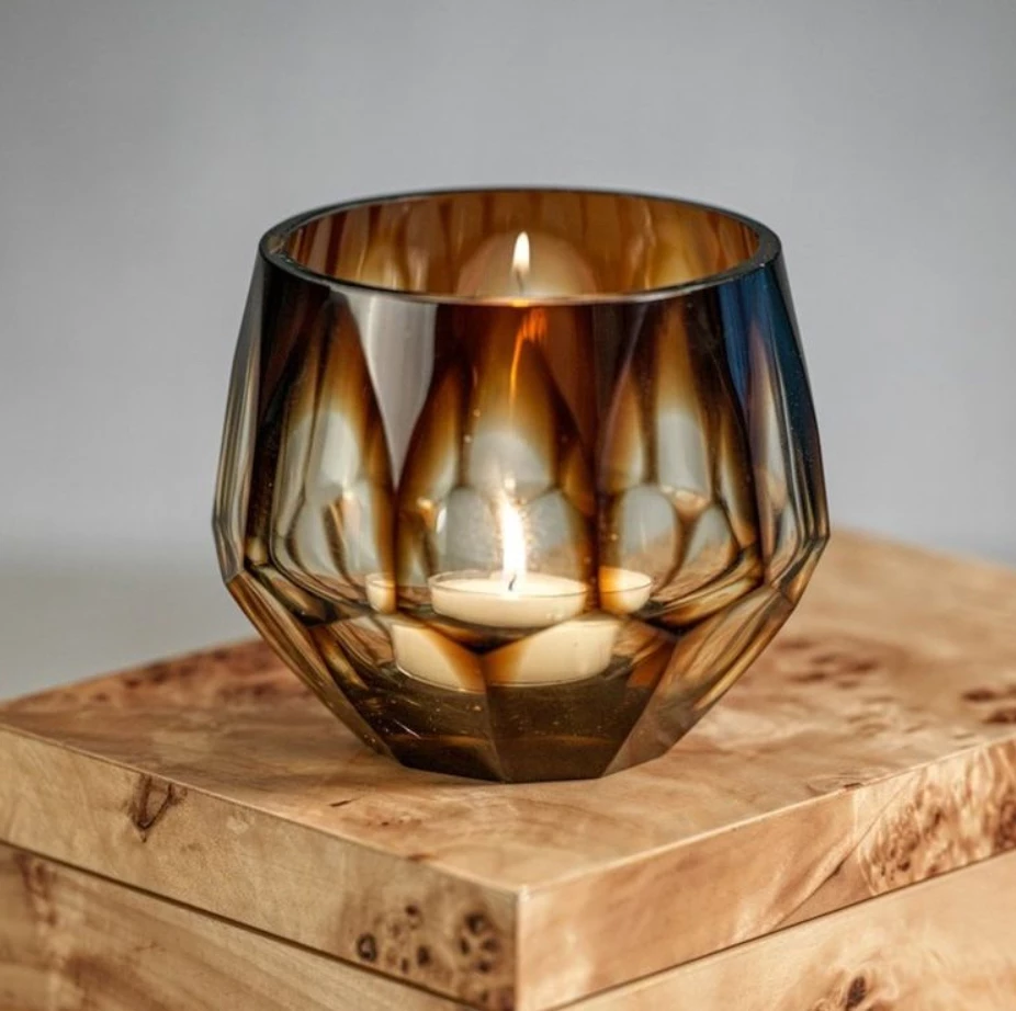 These beautiful hand made glass tealights shine when lit and will add ambience to any dinner table.